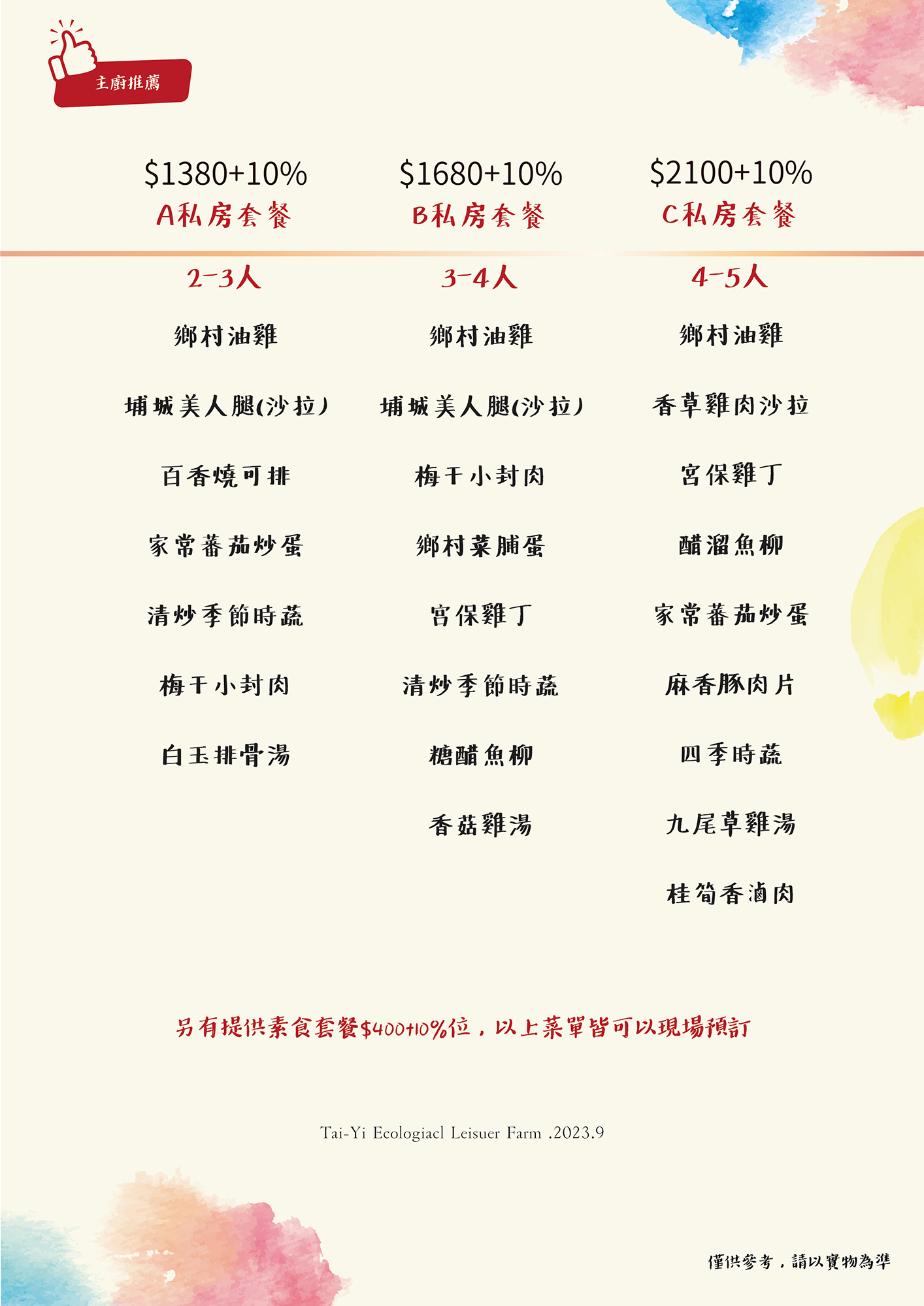 2.午/晚餐(團體首選)餐價格皆含税含服務費。