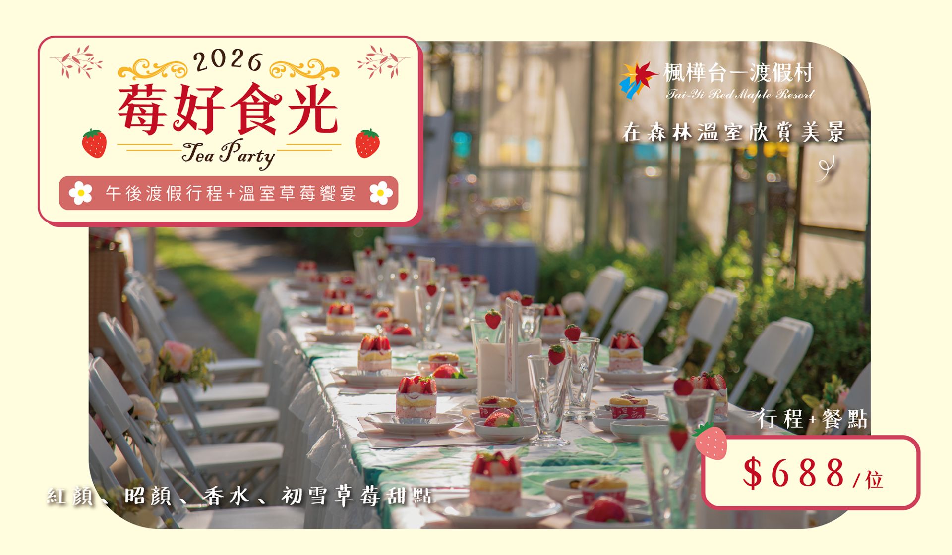 台一融合埔里田之戀&米MI-埔里蛋糕~推出最最特别的草莓宴~在優美的溫室享用最新鲜的點心,聽著森林的樂章,享受美好的午後時光〜