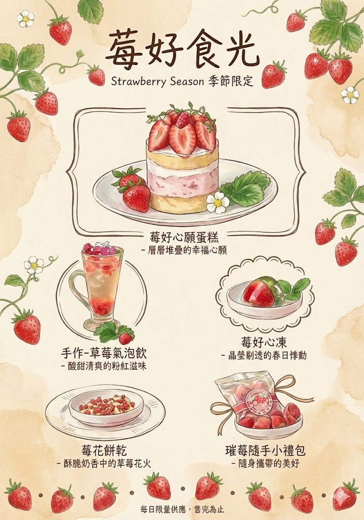 - 14:30-15:30 (享用草莓下午茶+手作DIY)