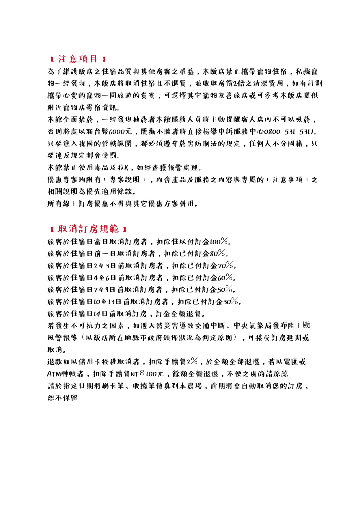 訂房需匯三成訂金(持住宿卷亦同),即完成訂房手續